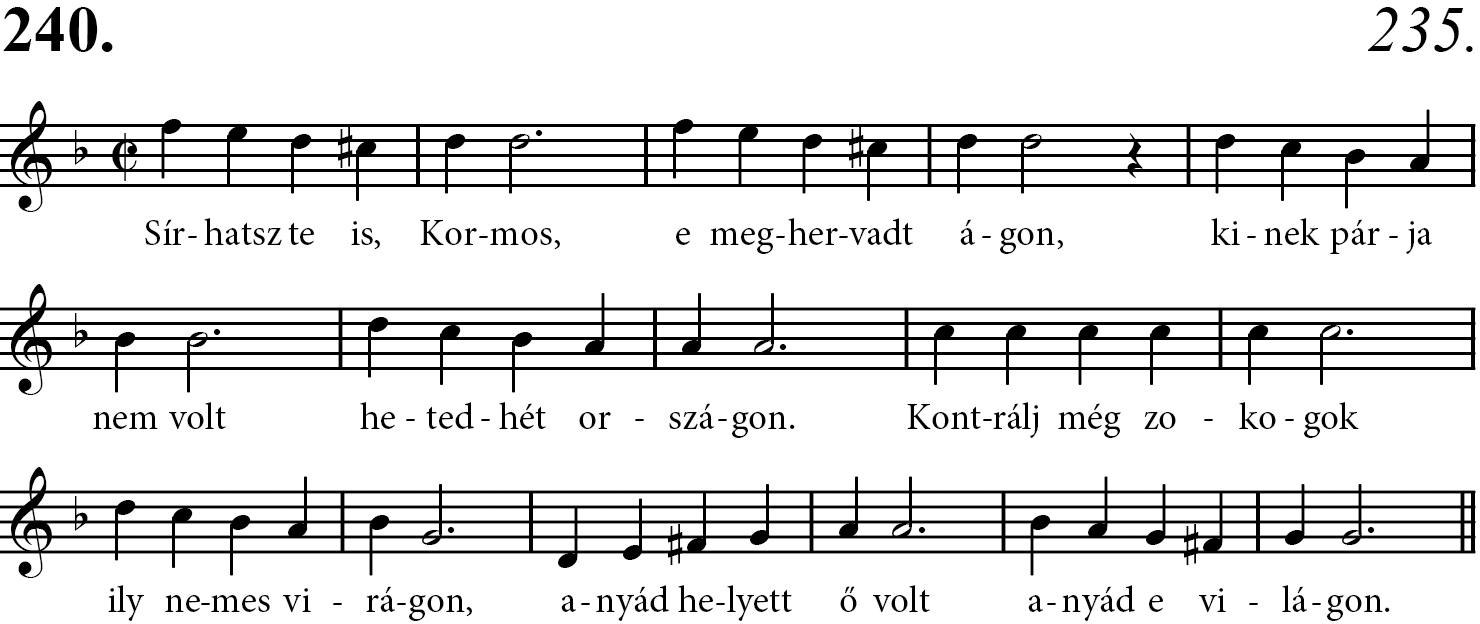 | Nótajelzés: | A Tündérországról leszen most beszédem (RPHA 5008) A nagy bölcs teremtést aki meggondolja (RPHA 0027) Egy régi dologról szép krónikát mondok (RPHA 0322) Minden állat dicsér, Úristen, tégedet (RPHA 0952) Trója nótájára (RPHA 7111) Megadja még Isten örömét szívemnek (RPHA 5116) |