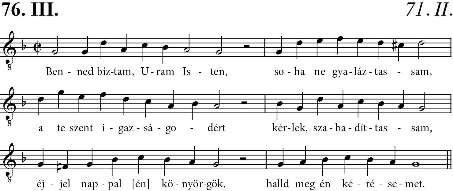 | Incipit: | Benned bíztam, Uram Isten, soha ne gyaláztassam |