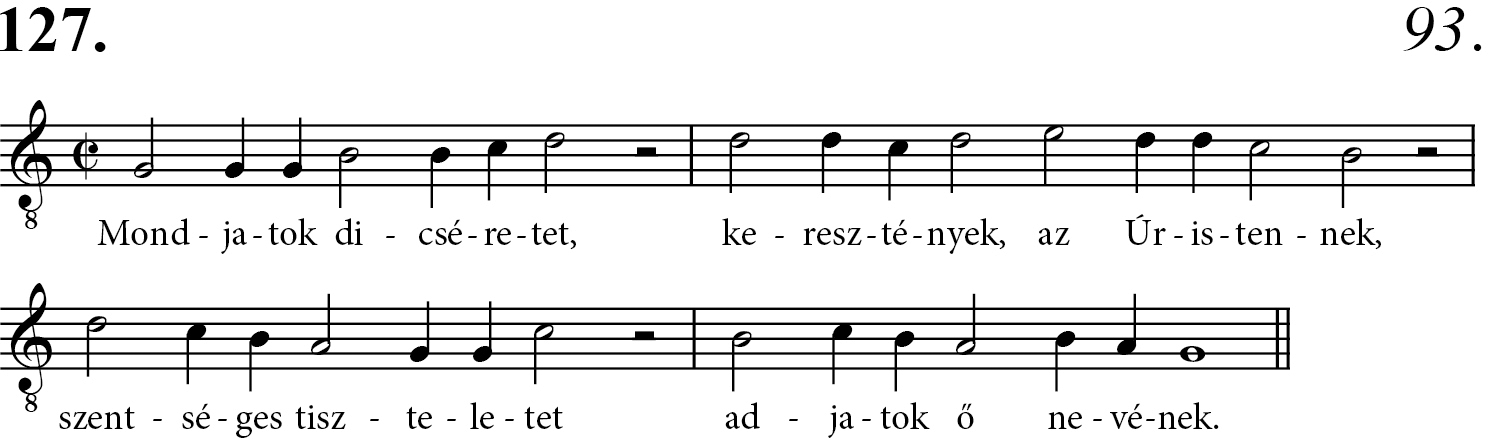 | Pro domo: | Disztichon dallamra énekelt vers, de szótagszámtartó és nem időmértékes. (Ld. +1) |