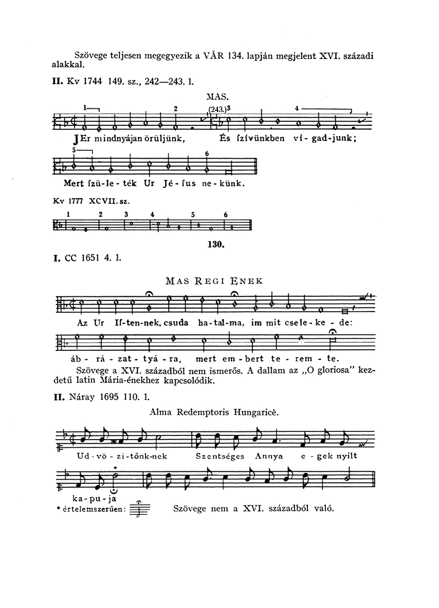 Az alábbi kották a következő kiadásból származnak: Csomasz Tóth Kálmán, Ferenczi Ilona (sajtó alá rendező) 2017. A XVI. század magyar dallamai. Budapest: Akadémiai Kiadó.