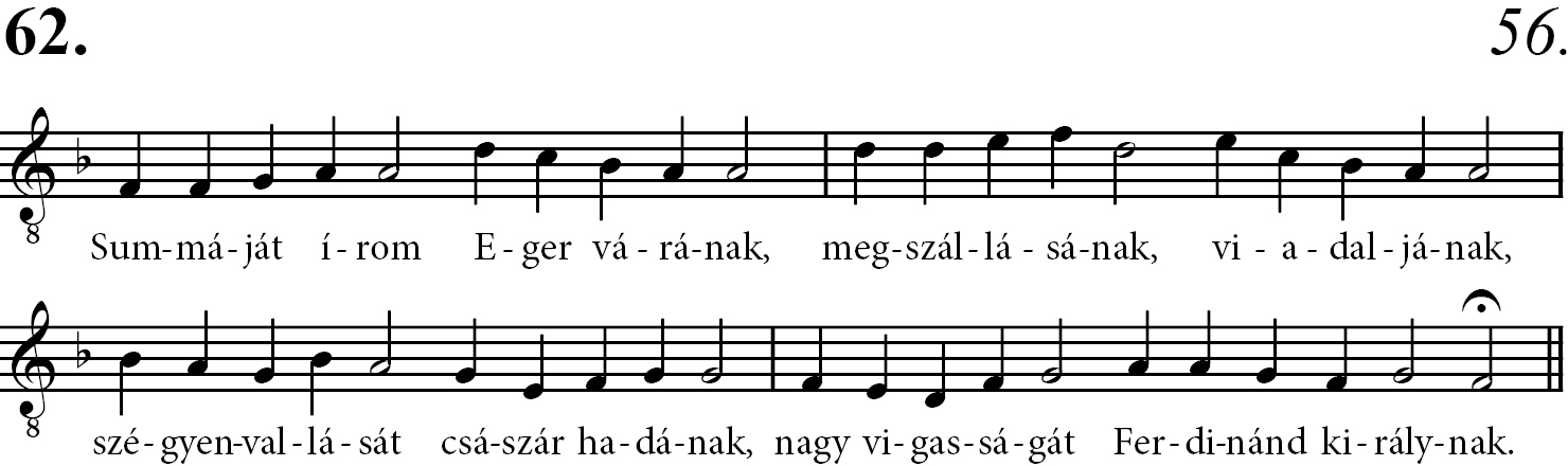 | Nótajelzés: | Mindenható Úr, felséges Isten (RPHA 5127) Aki az Istent megismerheti (RPHA 0068) Jer, emlékezzünk, keresztyén népek (RPHA 0645) Eger szállása mikoron vala (RPHA 7064) |